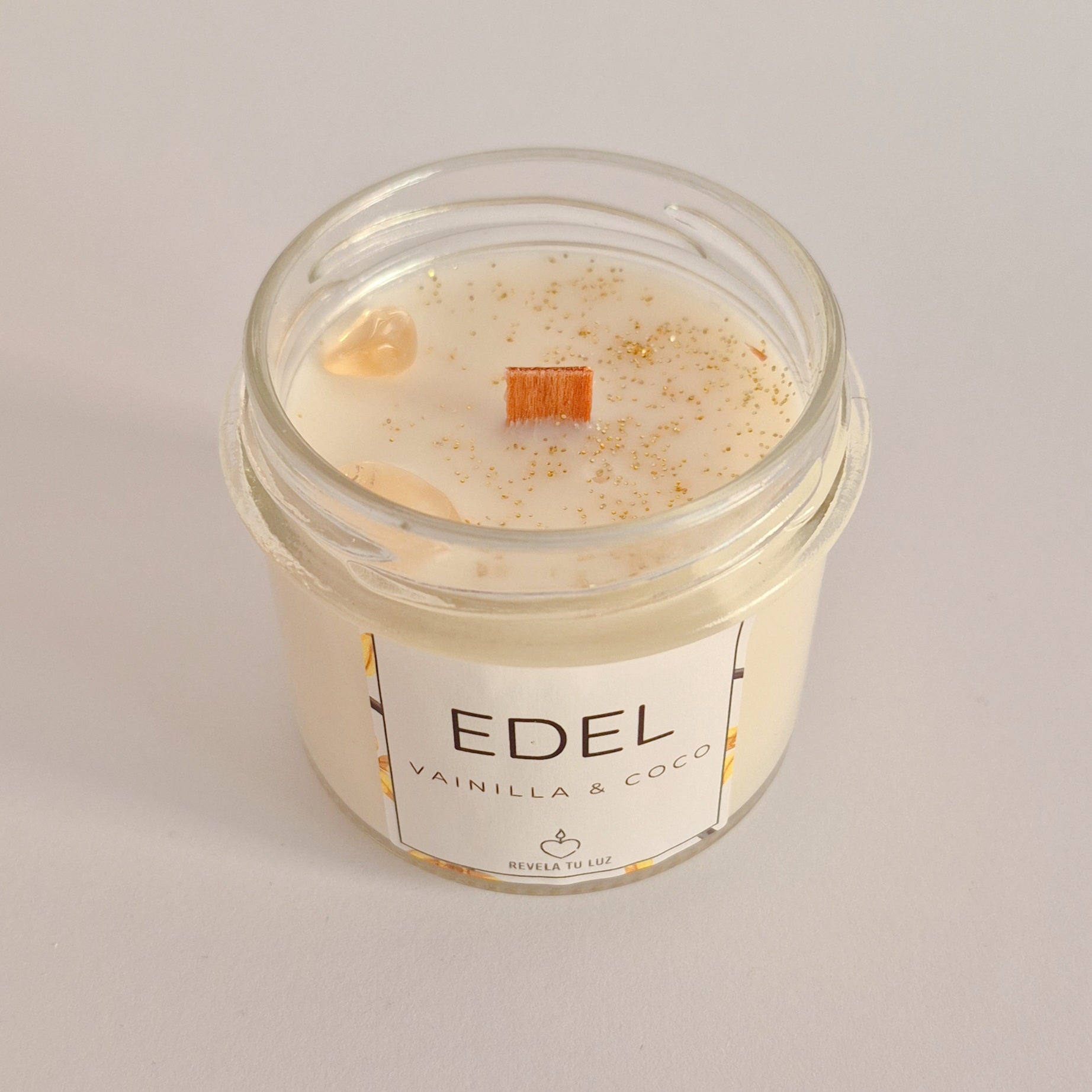 EDEL es una vela aromática artesanal creada para evocar la ternura, el amor incondicional y la elegancia en cada momento.