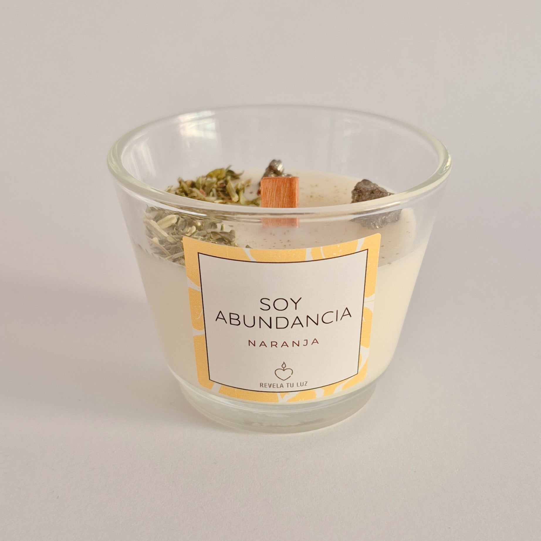 Su fragancia de naranja dulce aporta una energía luminosa y revitalizante que eleva la vibración del espacio, favoreciendo el optimismo, la confianza y el flujo natural de la abundancia.